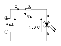 Estos diodos funcionan con tensiones alrededor de 2V por lo que es necesario colocar una resistencia en serie con ellos cuando se conectan directamente a una pila de tensión mayor. La tensión con la cual funciona estos diodos varía de acuerdo al color. La patilla larga nos indica el ánodo(+).